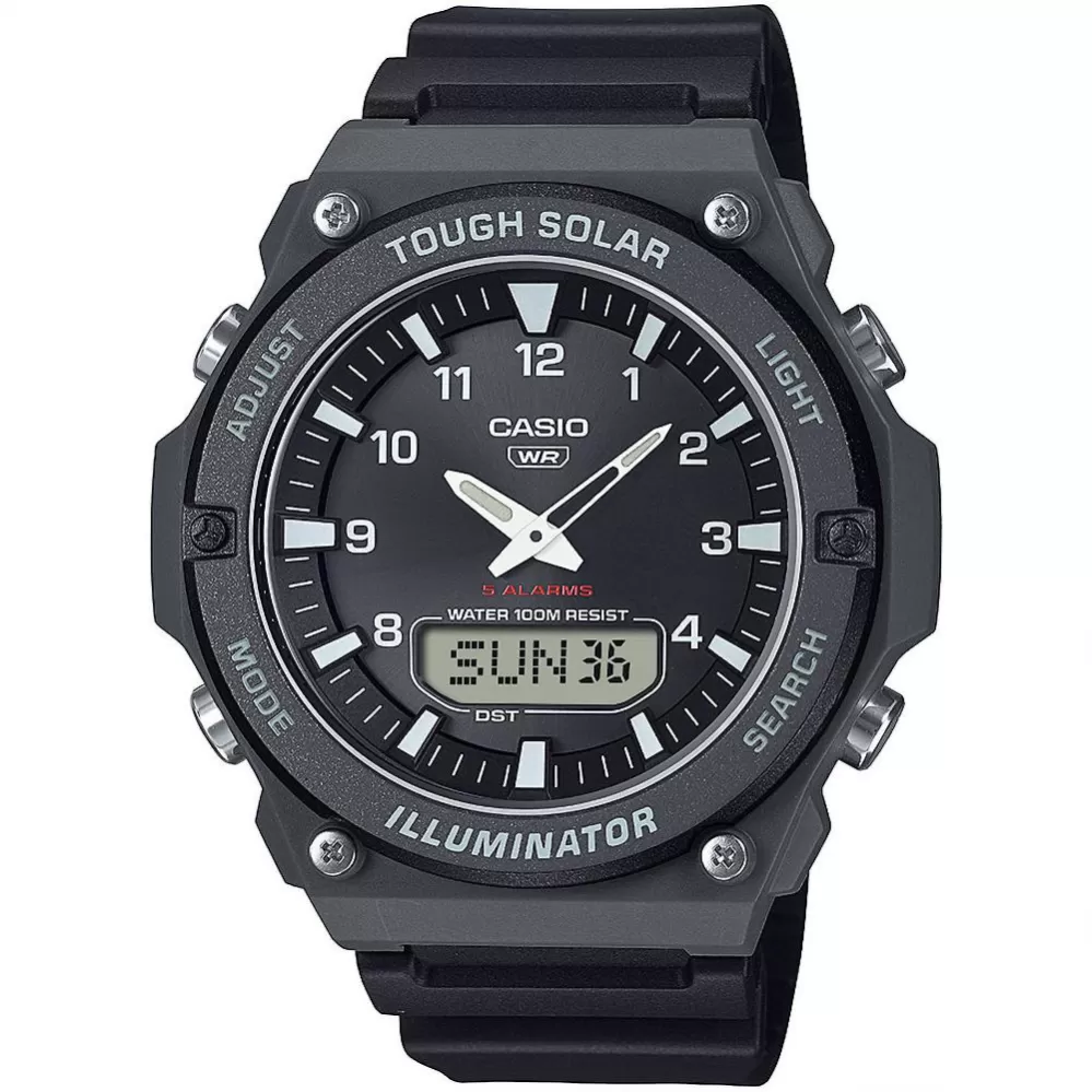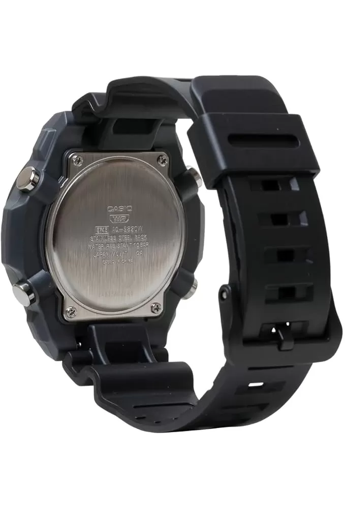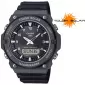 Sportovní pánské hodinky Casio Collection AQ-S820W-1AVEF s 50 mm velkým pouzdrem a řemínkem z černé pryskyřice zajišťující maximální odolnost, zatímco černý ciferník s oranžovým elektrickým podsvícením a digitálním displejem je chráněn plastovým sklíčkem.