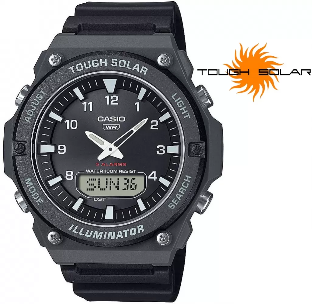 Hodinky pohání je solární strojek 5745 s přesností ±30 sekund za měsíc, takže se nemusíte starat o výměnu baterie. Kromě zobrazení času nabízejí hodinky řadu užitečných funkcí: datum, den v týdnu, měsíc, budík, časovač, stopky, ukazatel stavu nabití a světový čas. S vodotěsností 10 ATM jsou skvělé pro plavání a šnorchlování.