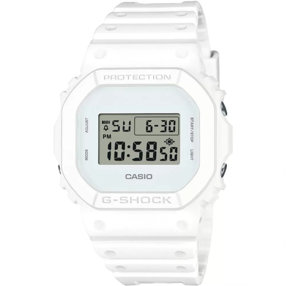 Casio G-Shock DW-5600WW-7ER – ikonická čtvercová klasika v čistě bílém provedení. Model DW-5600WW-7ER vychází z legendární řady 5600, která je základem celé kolekce G-Shock. Typické čtvercové pouzdro, digitální displej a extrémní odolnost jsou zde doplněny o minimalistické bílé provedení, které působí moderně, svěže a výrazně.