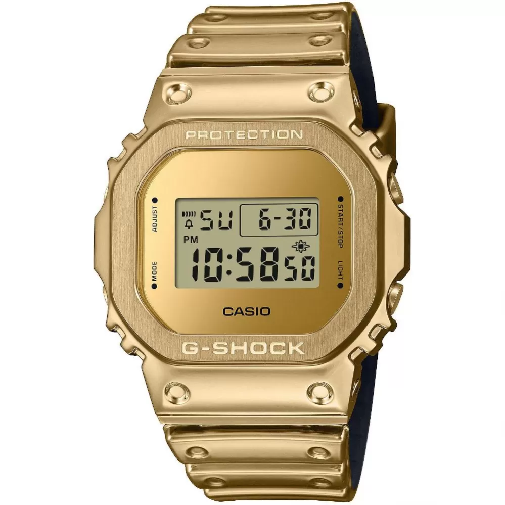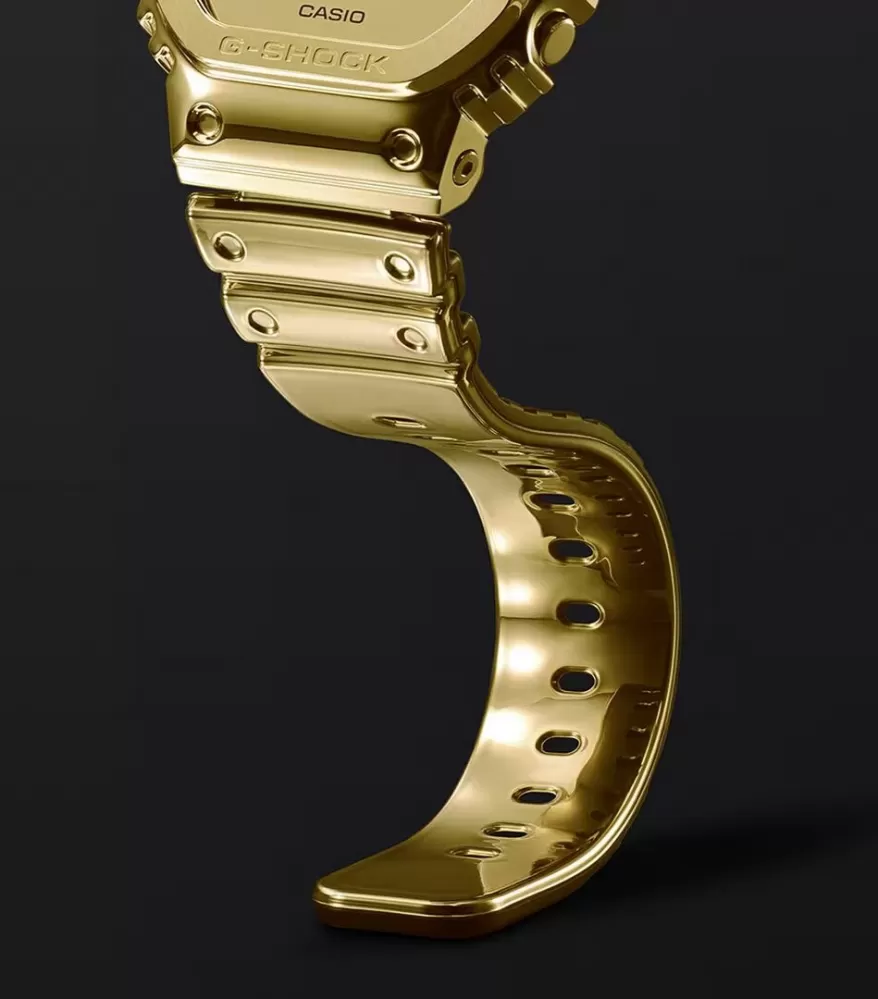 Casio G-Shock GM-5600YMG-9ER – ikonický tvar 5600 v luxusním zlatém provedení. Model GM-5600YMG-9ER přináší legendární hranatý design G-Shock série 5600 v moderním a luxusním vydání s detailem v teplém zlatém tónu. Kombinace ikonického tvaru a elegantního metalického vzhledu dělá z tohoto modelu stylový doplněk, který zaujme na první pohled – bez kompromisů v odolnosti či funkčnosti.