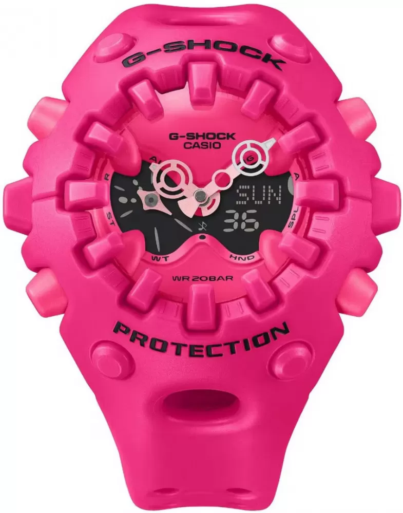 Casio G‑Shock GA‑V01‑4AER – sportovní digitální hodinky s výrazným růžovým provedením. Model Casio G‑Shock GA‑V01‑4AER přináší legendární odolnost G‑Shock v kombinaci s moderním a energickým designem. Hodinky zaujmou svým růžovým barevným provedením, které dodává sportovnímu ciferníku i celému tělu výrazný a stylový charakter — ideální pro každodenní nošení i aktivní životní styl.