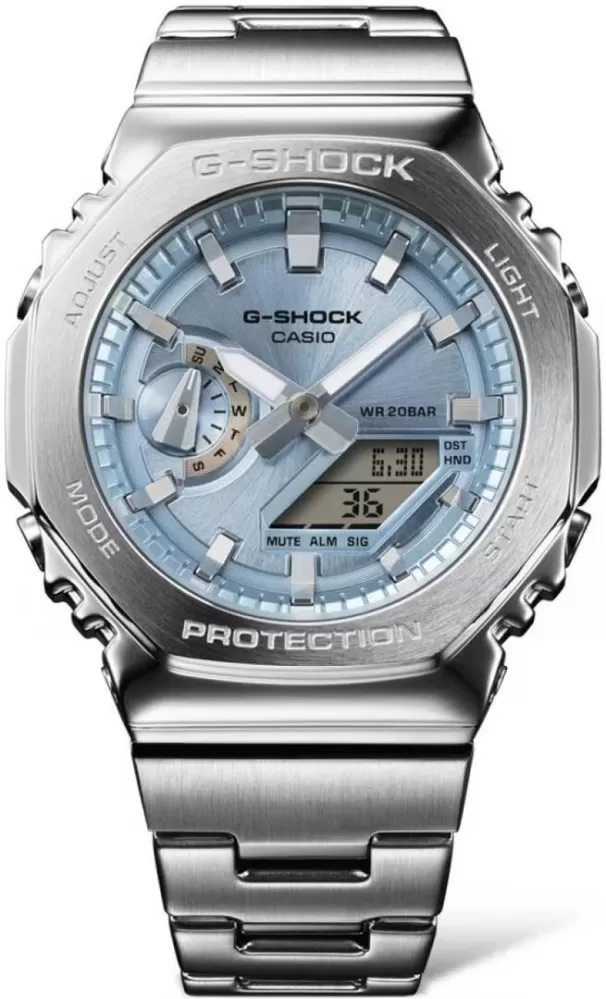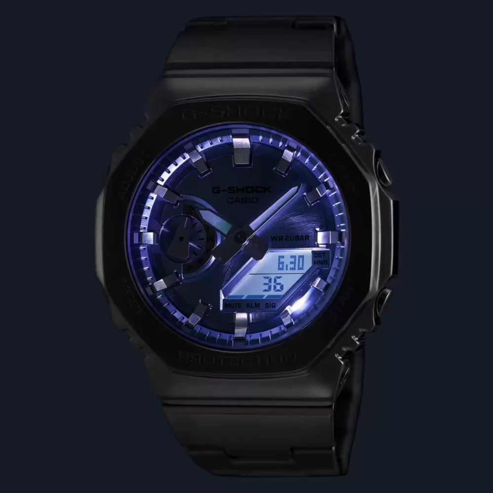 GM-2110D-2AER je ideální volbou pro ty, kteří chtějí typickou odolnost G-Shock v sofistikovanější kovové podobě.