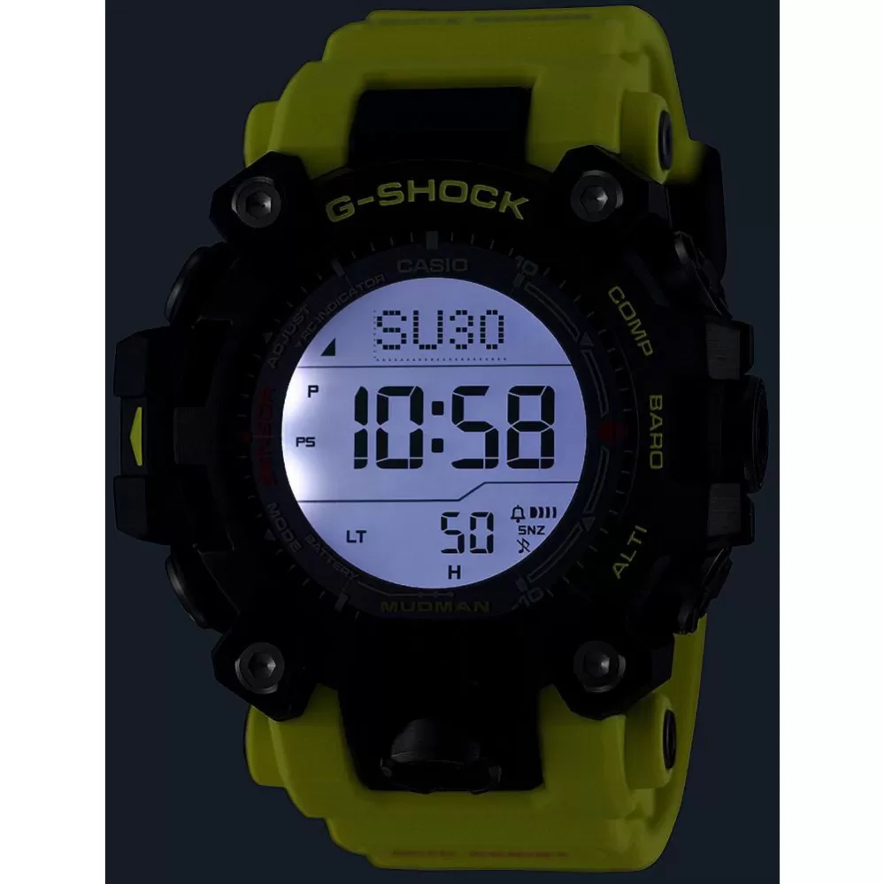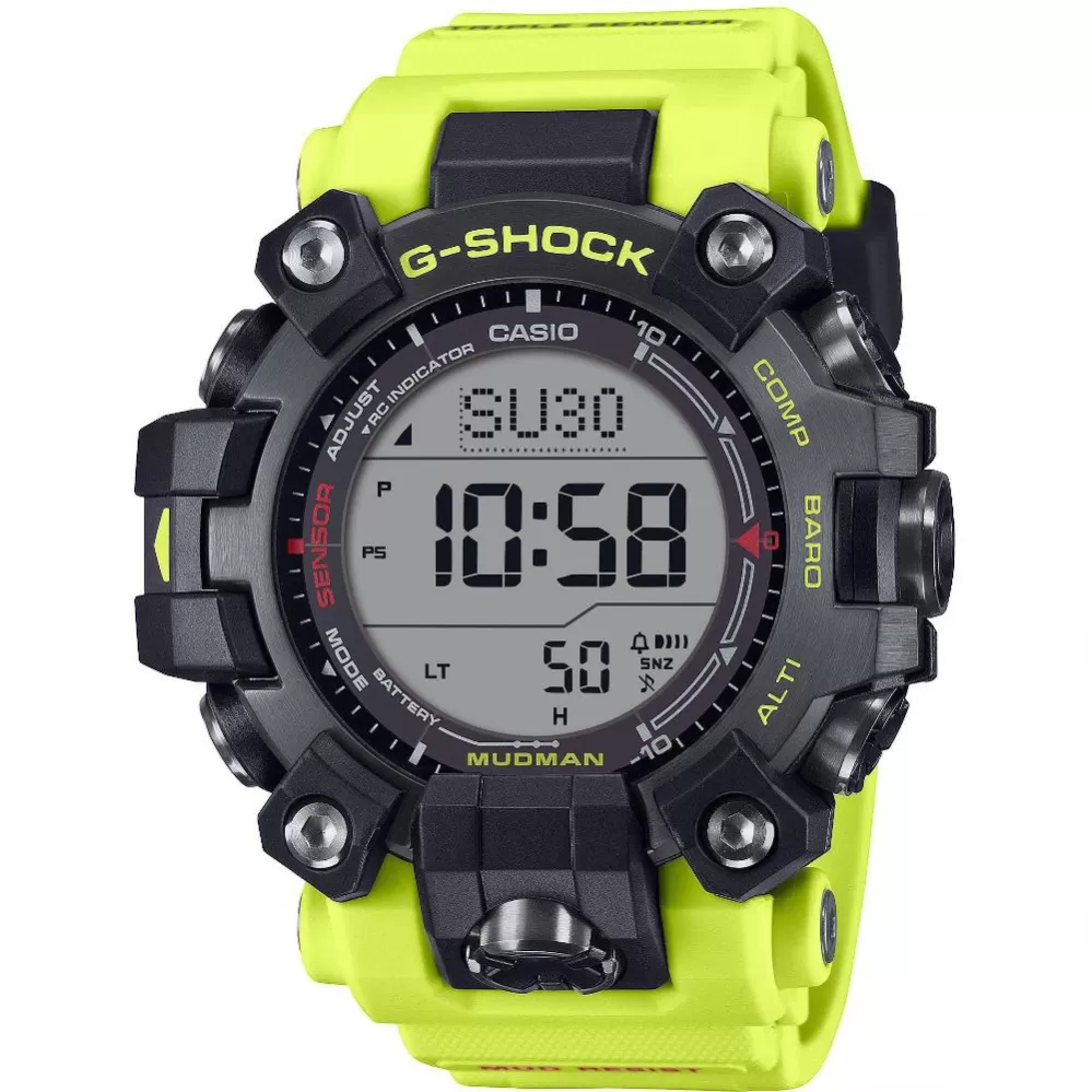 Casio G-Shock GW-9500MRY-1A9ER – špičkový Mudman z edice Manyosen. Model GW-9500MRY-1A9ER patří mezi vrcholové varianty nové generace Mudman. Vyniká extrémní odolností proti bahnu a nečistotám, solárním napájením, rádiovou synchronizací a trojitým senzorem. Speciální barevná edice Manyosen kombinuje černou s výraznými žluto-červenými akcenty inspirovanými japonskými minerálními prameny.