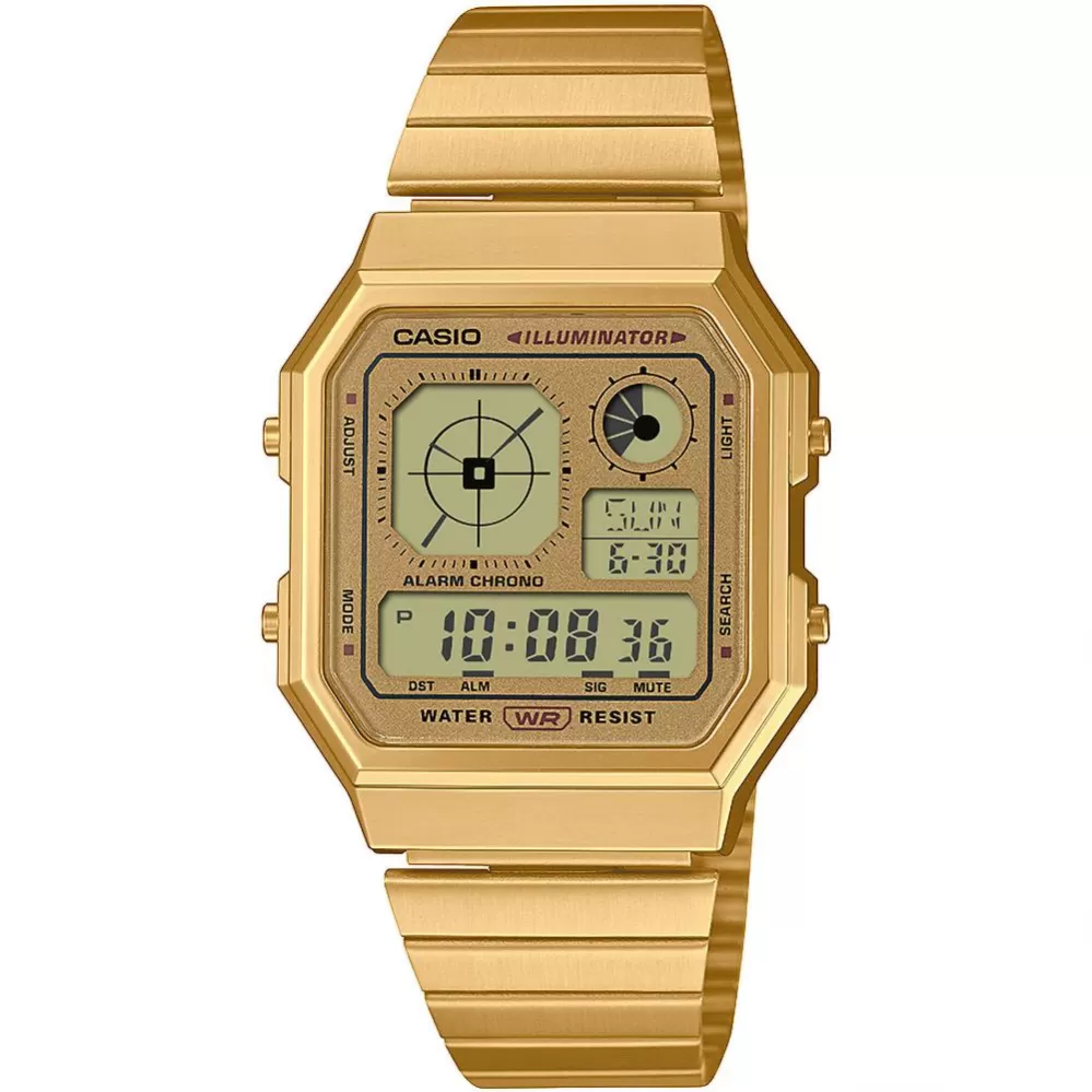 Kultovní retro digitálky se vracejí! Casio A130WEG-9AEF přináší dokonale přepracovaný design 80. let, doplněný o kvalitní ocelové provedení a moderní spolehlivost. Elegantní zlatý model se zlatým rámečkem působí čistě a hodí se ke každému outfitu – od volnočasového po formální.